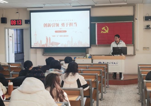 1105班党支部沈锦宇书记从历史脉络、理论内涵、实践要求三个维度,围绕何为中华民族共同体意识、中华民族共同体意识的提出以及新时代新形势下如何铸牢中华民族共同体意识展开讲解,并系统解读中华民族共同体意识的核心内涵。沈锦宇同志呼吁全体党员,要将中华民族共同体意识思想要点学深学透,将其融入学习科研与社会实践,以用实际行动向着中华民族伟大复兴的光辉彼岸奋勇前进。![]()
